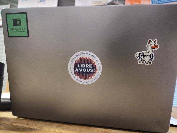 Et vu l’autocollant Paris Web art, il appartient à Julie, administratrice de l’April qui a écrit un édito et s’est présentée dans le numéro 5.