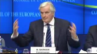 Consequently, before the journalists start asking questions, we won't be surprised of the fear that shows through this introduction to the press conference, when Commissioner Barnier makes his best to never diverge even slightly from the official position he has been holding since the beginning of the Council meeting.
